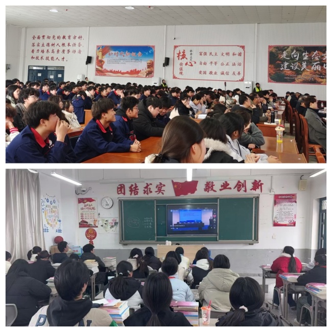 此次活动采用主会场与分会场联动的方式,主会场设在学院多功能报告厅,学院领导班子全体成员、各系部主任、班主任及思政课教师代表,以及各系部 300名学生代表齐聚一堂,现场聆听授课。各班级教室作为分会场,通过同步直播的形式,确保了全体学生都能参与到活动中来。这种创新的形式不仅扩大了活动的覆盖面,还营造了浓厚的学习氛围,让每一位学生都能深刻感受到校园安全与德育教育的重要性。