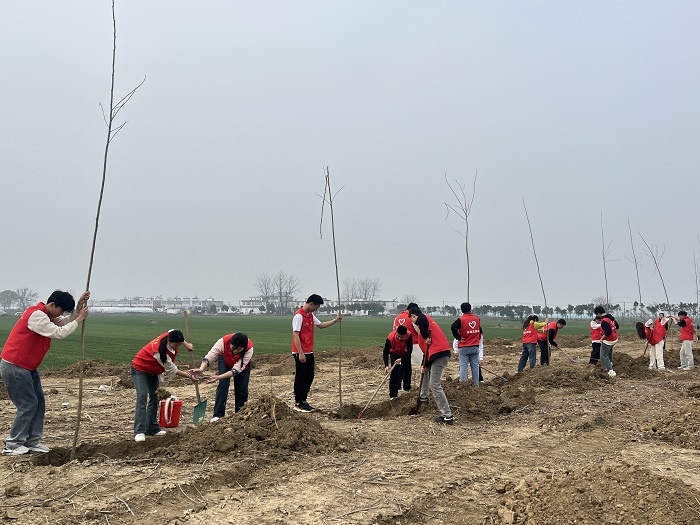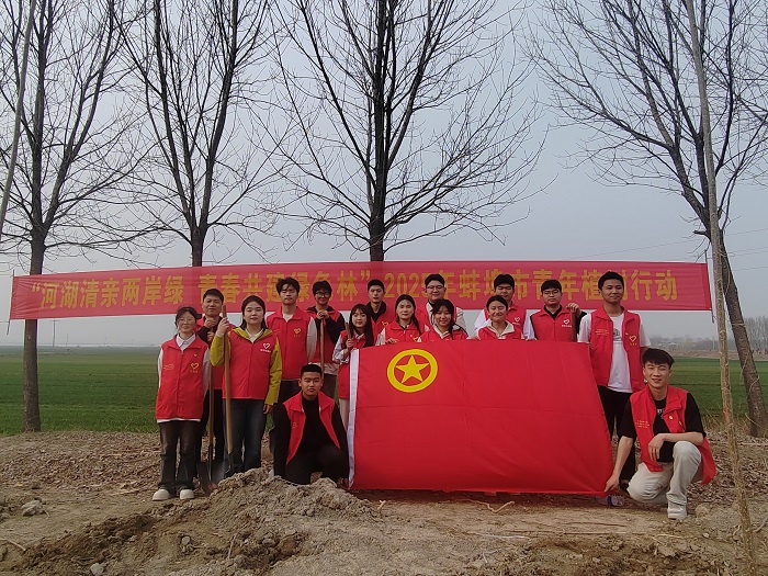 3月11日下午,在植树节即将来临之际,蚌埠技师学院团委积极响应号召,团委老师陈琪曼、青年教师张奥、汤瑶池、廖康康、陈仲阳带领11名学生代表前往固镇县王庄镇隔子沟西坝参加团市委主办的“河湖清亲两岸绿 青春共建绿色林”2025年蚌埠市青年植树活动,栽种绿色城市希望,助力生态文明建设。