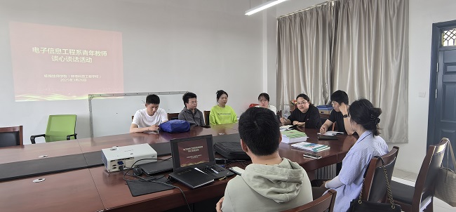 为加强青年教师队伍建设,促进新进教师成长,3月26日下午,电子信息工程系精心组织了一场针对青年教师的谈话谈心活动,系部全体青年教师集体参与了本次谈话谈心活动。此次活动聚焦新进教师在工作中面临的关键问题,助力其更好地投身教育教学工作。