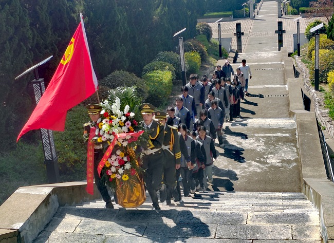 在清明节来临之际,为深切缅怀革命先烈,传承红色基因,弘扬优良传统,蚌埠技师学院团委于4月2日前往蚌埠市烈士陵园组织开展了“传承清明志,逐梦青春行”清明祭英烈主题团日活动。校团委教师、青年教师代表及学生代表共四十余人参加,共同祭奠英烈,寄托哀思。