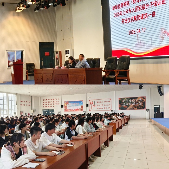 为进一步加强共青团组织建设,引导入团积极分子坚定理想信念、强化责任担当,4月17日,蚌埠技师学院(蚌埠科技工程学校)2025年上半年入团积极分子培训班开班仪式暨团课第一讲在学校多功能报告厅顺利举行,233名入团积极分子参加此次培训。