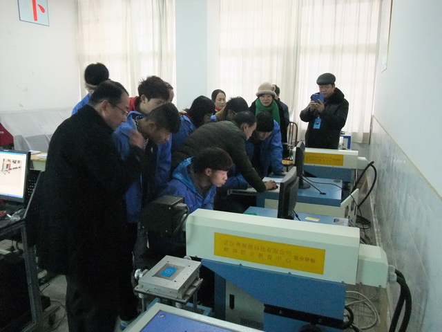 12月16日上午,市第九督学组督学孔琪、常立康、郭玉祥一行三人来到我校,在宋晓宾副校长的陪同下走进课堂,认真听取了机电部刘波老师激光打标机的使用—金属名片的制作和机械工程系陈敬东老师应用G92车削三角形圆柱外螺纹理实一体化的课堂教学。