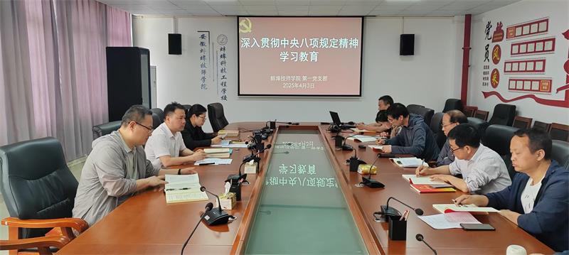 4月29日下午,蚌埠技师学院第一党支部在行政楼307会议室召开深入贯彻中央八项规定精神学习教育专题会议,会议由支部书记方习贵主持,全体党员参与学习。
