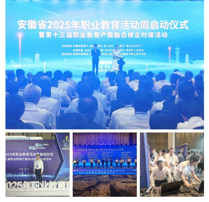 2025年5月13日上午,安徽省2025年职业教育活动周启动仪式暨第十三届职业教育产教融合校企对接活动在芜湖市隆重举行。蚌埠科技工程学校校长陈华坤作为嘉宾出席活动,并代表学校接受“安徽省第四批优秀中等职业学校”授牌。