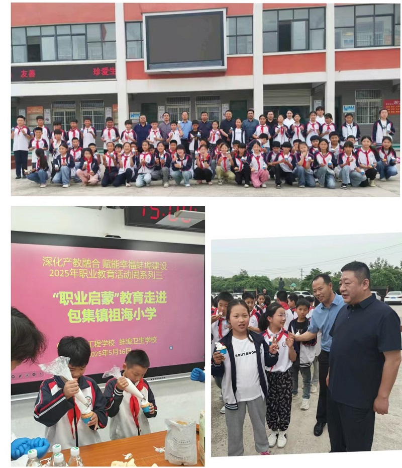 5月16日,蚌埠科技工程学校 蚌埠卫生学校党委书记朱冬民率师生赴怀远县包集镇祖海小学,开展“职普融通示范日”职业启蒙活动,将职业教育融入乡村教育。