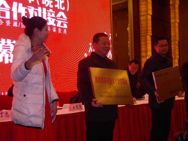 近日,陈元高校长参加了市委、市政府主办的2014蚌埠(皖北)人才对接交流会开幕式,并上台接受了“国家级高技能人才培训基地”授牌。我校 “国家级高技能人才培训基地”项目是2014年10月成功获得人社部、财政部批准的,中央财政资金投入500万元,用于支持师资队伍培养、校企合作产教融合人才培养模式改革和教学基础能力建设,项目建设期限为两年。目前该项目建设已经启动,将助力我校高技能人才培养,有力提升服务经济、促进就业的能力。