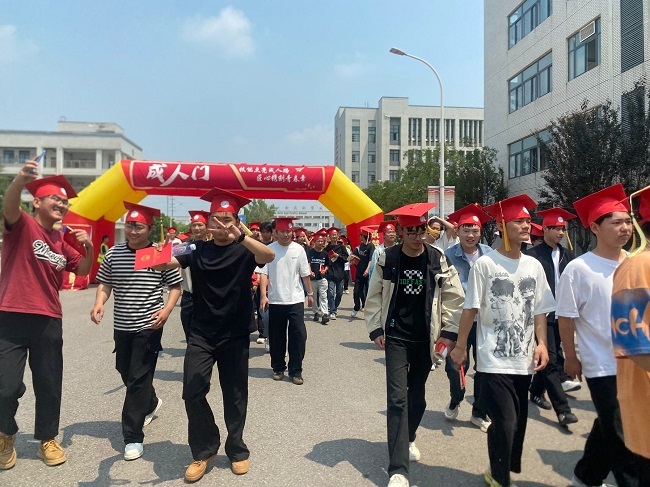 仪式最后,学生们依次跨越象征成长的“成人门”,在“写给十八岁”留言墙上郑重书写自己对学校的感恩与祝福,以及对未来的憧憬与决心。一笔一划间,既是对青葱岁月的深情回望,更是对技能成才之路的笃定承诺。