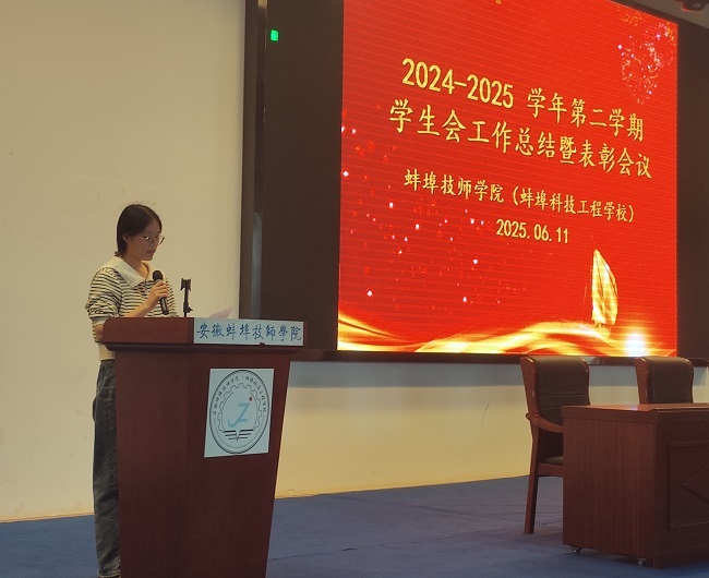 6月11日,蚌埠技师学院团委在学院多功能报告厅组织召开2024—2025学年第二学期学生会工作总结暨表彰会议,全面回顾过去一学期学生会工作,表彰优秀成员,激励全体成员在未来更好地服务同学、助力校园发展。会议由校团委教师陈琪曼主持,学生会全体成员参会。