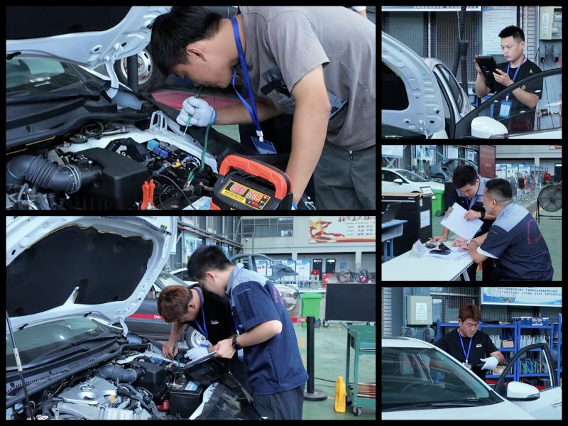 7月31日的实操竞赛更是高潮迭起。清晨7时,选手们齐聚学院多功能报告厅,通过抽签分为两个竞赛组,随后现场抽取实操题目,依次进入赛场展开比拼。从汽车故障诊断到部件拆装调试,选手们手起刀落间尽显专业,汗水浸湿衣衫仍专注投入,赛场内工具碰撞声、设备运转声交织成奋进的乐章。裁判组全程紧盯操作规范、流程效率与安全细节,依据统一标准现场打分,确保赛事公平公正。方习贵主任表示:“农民工是产业发展的重要力量,以赛促学能切实提升他们的技能水平,我们既要严格执裁,更要为他们提供成长的信心。”