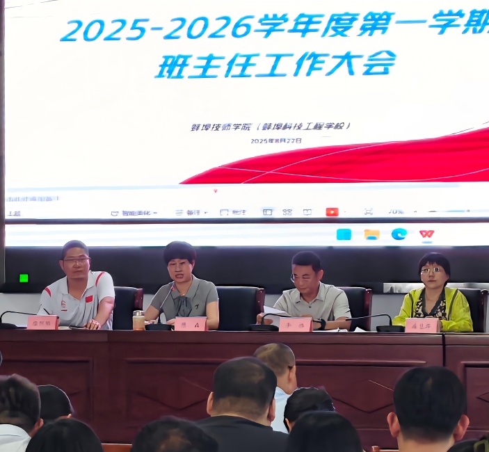 8月22日下午,蚌埠技师学院新学期班主任工作会议暨学生资助工作专题培训会在学院多功能报告厅召开。学生处全体工作人员、各系部领导和全体班主任参加了会议,副院长陈垚出席会议并讲话。会议由李恪同志主持。
