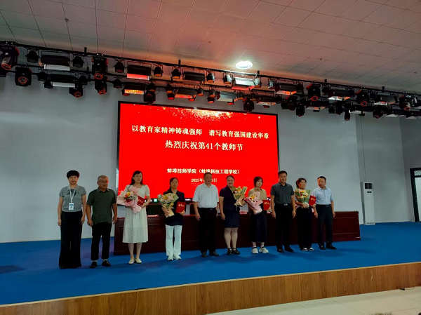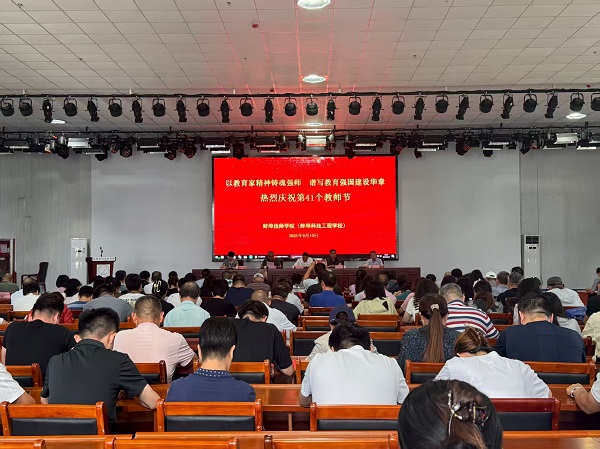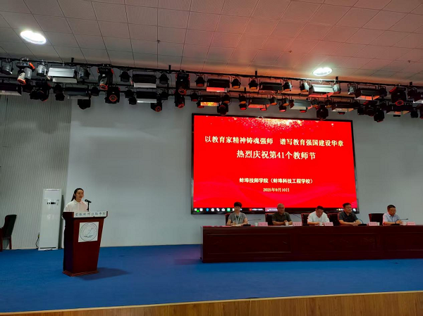在第41个教师节来临之际,为大力弘扬教育家精神,营造尊师重教浓厚氛围,9月10日下午,蚌埠技师学院举行“以教育家精神铸魂强师 谱写教育强国建设华章”第41个教师节。学院党委副书记、院长陈华坤主持会议,全体教职工齐聚一堂,共同庆祝属于教育工作者的光荣节日。