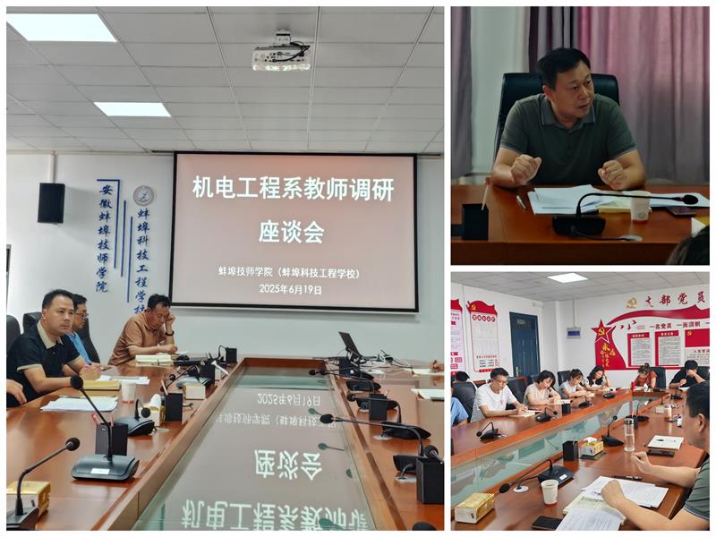 为进一步了解学院专业建设情况,推动学院高质量发展,6月19日下午三点,蚌埠技师学院党委副书记、院长陈华坤深入机电工程系开展调研工作,与系部教师代表共同探讨发展新路径。机电工程系教研组长、党员及部分教师代表参加了此次调研座谈会。