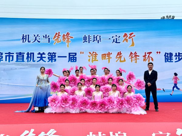9月27日上午,蚌埠市市直机关第一届“淮畔先锋杯”健步走活动开幕式顺利开启,2000余名来自市直机关、企事业单位及高校的参与者齐聚现场,氛围热烈。蚌埠技师学院受邀参演,公共服务系师生作为本次演出的核心力量,精彩呈现歌舞《我和我的祖国》。