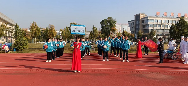 基础部方阵经过精心准备。他们身着统一的运动服装,色调明亮、朝气蓬勃。老师们迈着矫健而整齐的步伐,精神抖擞地通过主席台。“第四工会,齐心协力,同心同德,共创佳绩”——他们高喊着响亮的口号,声音洪亮,气势如虹,充分展现了基础部教师团结向上、追求卓越的精神风貌。那坚定的眼神和自信的微笑,赢得了看台上领导和学生们的阵阵掌声。