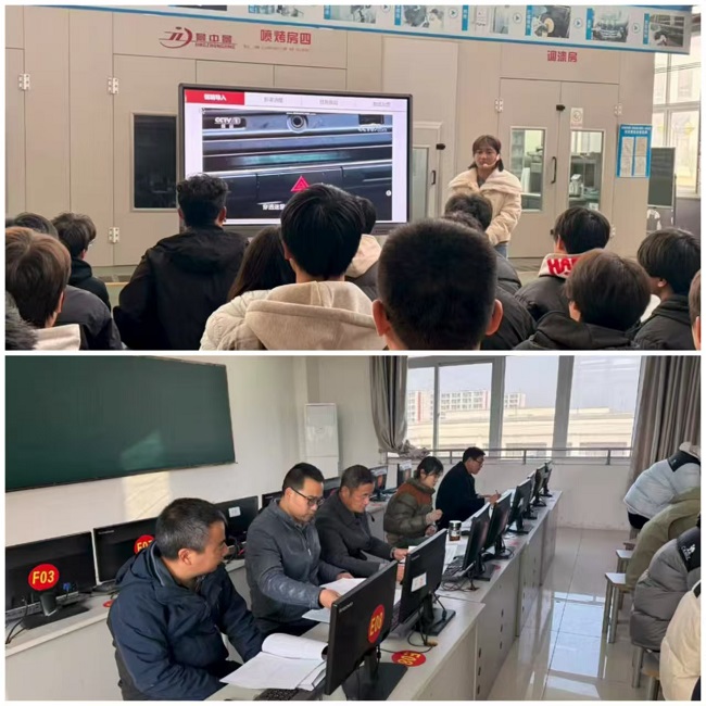 汤瑶池老师CAD课程教学,聚焦“圆、圆弧、圆角”绘制方法与操作技巧,采用“案例演示+软件实操”的理实结合模式,清晰传递教学要点。时小喆老师在汽车实训车间开展工学一体实践教学,以“照明与信号系统识别及检测”为核心,通过实物认知,践行“讲练一体”教学理念。两位教师充分展现了对教学内容的把控力与课堂组织能力,考评组则从教学设计逻辑性、教学实施规范性、师生互动有效性、教学目标达成度等维度细致记录、综合评估。