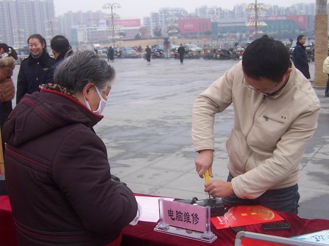 3月4日上午,我校团委组织了部分学生团员和专业教师来到淮河文化广场开展学雷锋活动。利用中职学校的技能特长开展了电脑维修、形象设计等贴近群众需求的志愿服务项目,接受服务的群众120多人。本次活动受到了广大群众的热烈欢迎。(团委供稿)