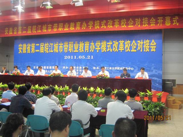 5月21日,校领导胡业武、宋晓宾率领有关部门人员和师生参加了在合肥工业大学举行的安徽省第二届皖江城市带职业教育办学模式改革校企对接会。会议由安徽省教育厅和合肥市人民政府联合主办。借此机会,我校展出了近年来在特色专业建设等方面取得的办学成果,让省领导、广大企业家和社会各界进一步了解我校,增强办学的社会影响力。同时,这次会议,开阔了与会人员视野,对进一步深化我校职业教育办学模式改革,提供了难得的学习机会和校企合作机遇。