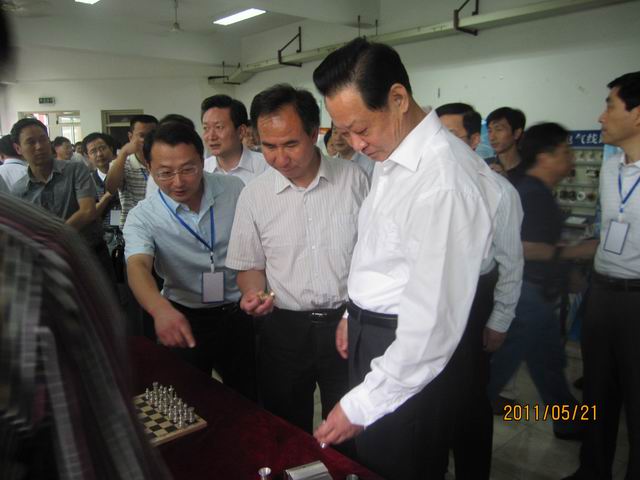 宋晓宾副校长向省人大副主任朱先发、教育厅领导程艺介绍数控技术专业建设成果