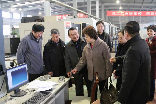 督导组一行在陈元高校长、胡业武书记等引导下,深入学生食堂、宿舍、教室、实训车间、综合办公大楼,对校容校貌、办学基础设施、学生食宿保障、教学实训情况、安全保卫措施等进行了全方位的巡查。一流的办学基础条件、优美的教学环境、良好的教学秩序和鲜明的职教特色给朱蕾留下了美好印象。“这是一所真正的职业学校!”看到职教中心学生真刀实枪的实训场面,陪同的查海波禁不住称赞道。