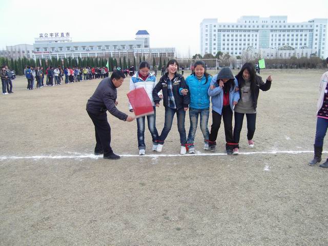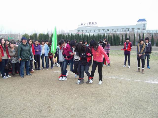 2011年3月24日下午两节课后,学校足球场上变成了笑声、欢乐声的海洋。为了丰富同学们的业余文化生活,增添校园文化氛围,校团委、学生会组织了2011年校园“两人三足”趣味比赛,此次比赛体现的是团队队员之间的配合与信任,同时锻炼了大家的团队合作能力及协调能力。通过本次活动培养了学生的信任感和归属感,由对团队的信任到信任周围的其他人,由对班级的归属感扩到到对学校、社会的认同感和归属感。