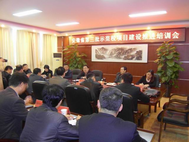 本次培训会为期一天,由教育厅职成处主办,陈锋副处长主持会议,15所第三批项目学校的负责人参加了会议。陈锋通报了省示范校中期检查情况,并对各校交流汇报情况作了总结。示范校国家级评估专家—安徽省汽车工业学校朱国苗校长、盐城技师学院李立新处长对与会人员进行了培训。