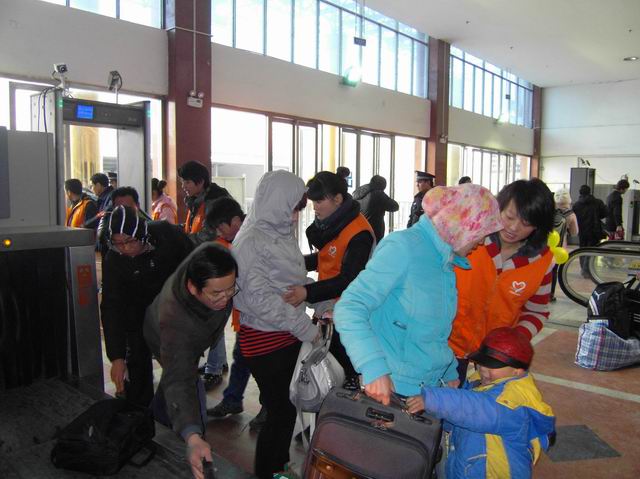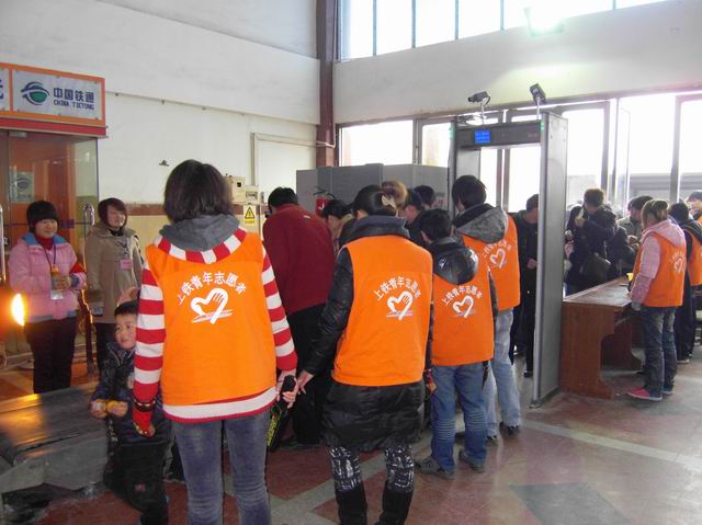 初春三月,春寒料峭。在蚌埠火车站候车室进站口,一批批旅客从四面八方涌来,鱼贯通过大厅安检处接受安全检查。来自我校的一群青年志愿者热心忙碌着,协助站内民警和工作人员,对进站旅客的随身物品、包裹等进行安全检测,对检测出的违禁物品,予以登记、收缴。学生志愿者工作认真负责,遵纪守法,吃苦耐劳,表现出了良好的素质,受到站内安保人员好评。