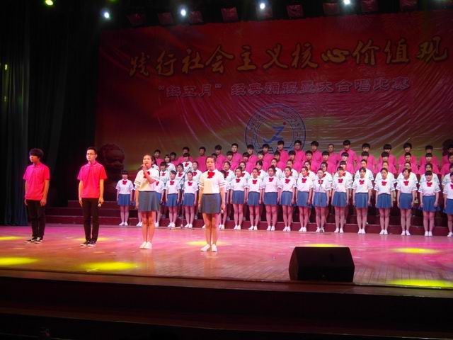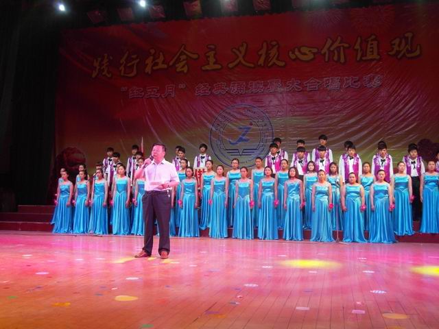 “红五月 ”歌咏比赛是蚌埠职教中心德育教育的传统活动和有效载体,也是蚌埠职教中心的德育品牌。今年“红五月”经典诵读暨大合唱比赛的主题是“践行社会主义核心价值观,争做奋发有为新一代中职生”。为高水平地举办好本次活动,张玉琳副校长指导学生处进行了精心筹划,各班级都进行了精心排练,五月的校园不时飘荡着昂扬的歌声,同学们的理想信念和集体荣誉感在这里凝聚和升华。