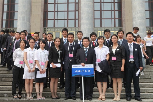 经学校推荐和团市委选拔,我校2008级电子商务(1)班宋锦同学从全市莘莘学子中脱颖而出,代表蚌埠市参加了8月23-25日在北京召开的中华全国学生联合会第二十五次代表大会。