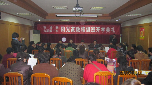 经我校与市妇联的积极组织和精心安排,我校家政服务培训于2010年11月2日正式开班,在开班仪式上有市妇联主席蒋鸿燕、蚌埠职教中心副校长宋晓宾、市商务局、财政局的领导参加,会议由宋晓宾副校长主持,蒋鸿燕做了讲话,并对家政服务培训提出了三点希望:一是转变观念,提高对家政服务员职业的认识;二是遵守纪律,严格要求,圆满完成学习课程;三是加强管理,齐心协力,极力提供就业机会。宋晓宾副校长对家政服务培训提出的了几点要求。此次参加培训的学员近60人。(培训鉴定科 供稿)