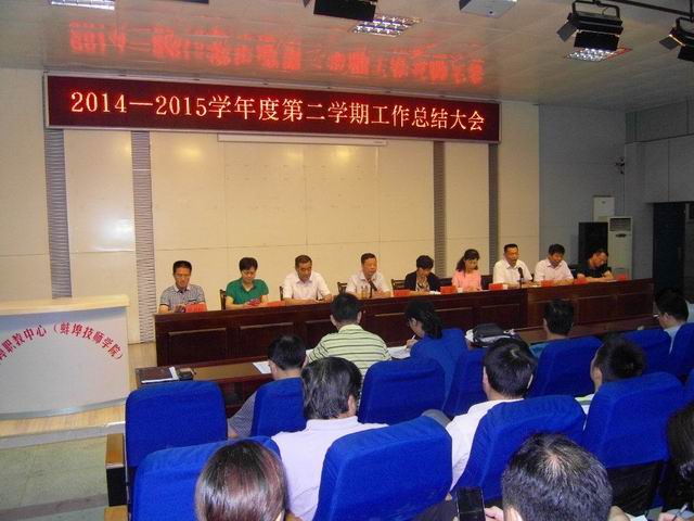 6月30日,我校召开2014-2015学年度第二学期工作总结大会,会议由胡业武书记主持,全体教职工参加了会议,市教育局局属学校责任督学孔琪、魏曼玲列席会议。