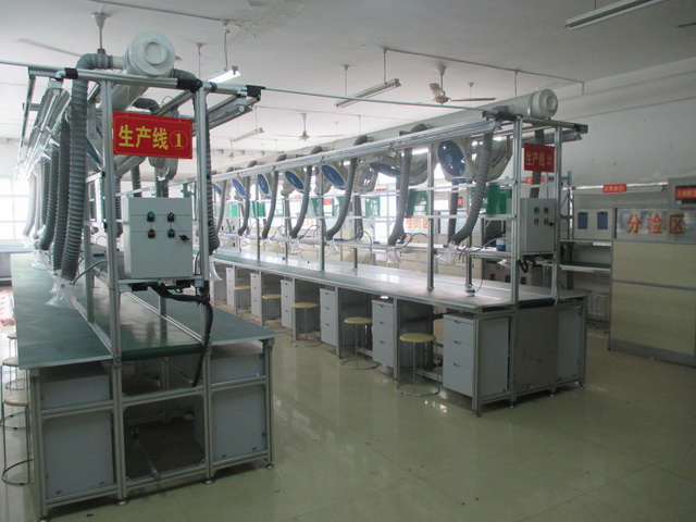 该实训基地是一条拥有40个工位的AMPD-300U型电子电器产品装配流水线,并设有原料分拣、产品质检和包装等功能区,有多个不同类型的货架,可容纳50名学生进行电子焊接、电子装配的生产和实训。该实训基地着重于生产操作技能的训练,为学生将来走向工作岗位更好更快的适应电子生产岗位需求搭建了一个好平台。(机电工程系)