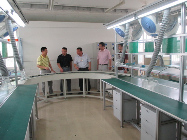 7月27日,校企合作实训基地——电子电器产品装配生产线建设完成。陈元高校长和宋晓宾副校长兴致勃勃地参观了该实训基地,机电系王秀军主任、焦其彬副主任和相关老师陪同。陈校长在参观后指出,一定要充分利用该实训基地,将校企合作落到实处,将人才培养提升层次,更好地服务于地方经济。