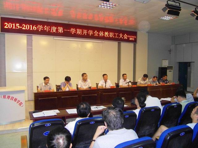 8月21日上午,我校2015—2016学年度第一学期全体教职工大会如期举行,校领导陈元高、胡业武、卢嘉砾、张玉琳、宋晓宾、包太平、陈劲松出席,胡业武书记主持会议,陈元高校长作工作报告。