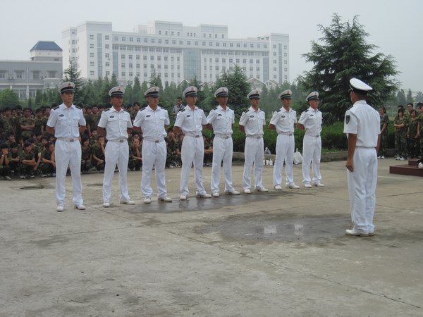 在开训仪式上,校领导马太民书记、张玉琳校长、宋晓宾校长、卢嘉瓅校长,海军蚌埠士官学校二大队朱队长、吴教导员分别在主席台就坐。