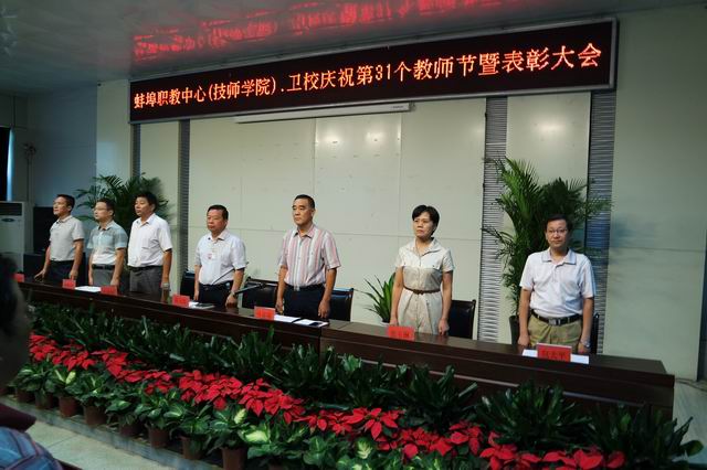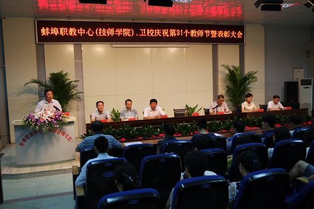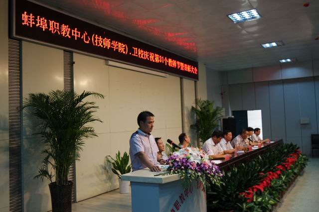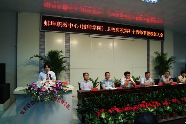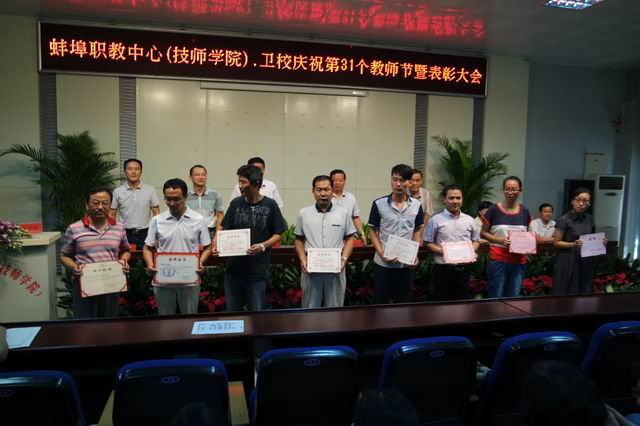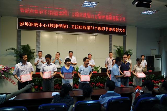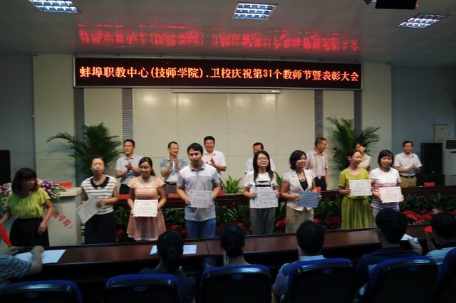 宋晓宾副校长宣读了《蚌埠职教中心(蚌埠技师学院)关于2015年教师节表彰的决定》,之后,举行了颁奖仪式,部分获奖人员作为代表上台接受了校领导的颁奖和祝贺。