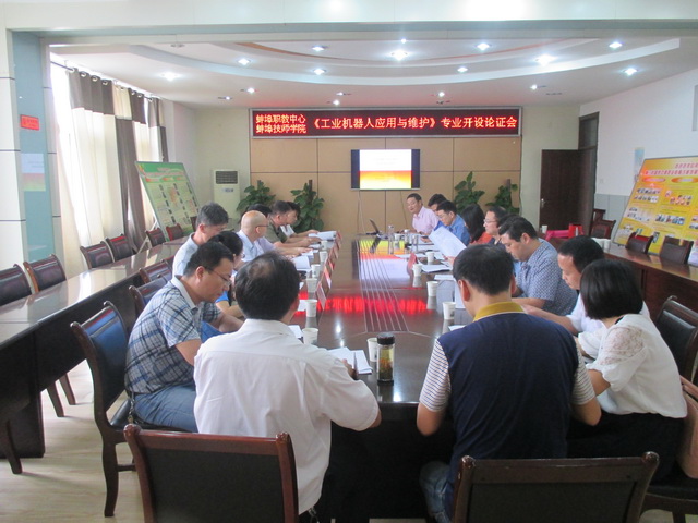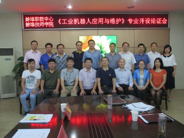 为响应我国近期公布的《中国制造2025》和蚌埠市政府《关于聚焦工业突破冲刺第一方阵的指导意见》的号召,我校拟增设《工业机器人应用与维护》专业。为论证专业开设的可行性,2015年9月22日下午,学校召开《工业机器人应用与维护》专业开设论证会。