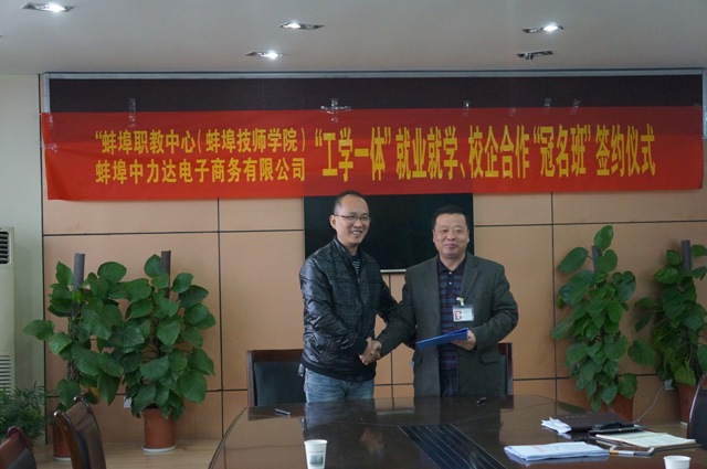 为进一步加强我校电子商务专业建设,充分发挥我校电子商务专业雄厚的师资力量优势,2015年10月28日下午,我校与安徽中力达电子商务有限公司签订校企合作协议,携手打造我市集培训、培养、运营的高层次的电子商务平台。