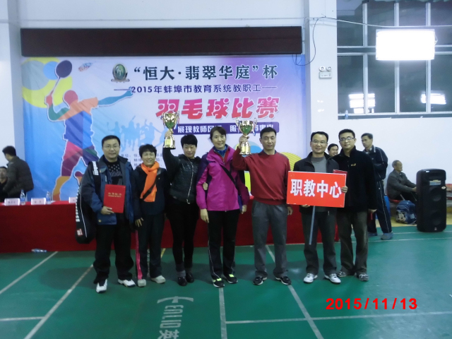 2015年11月9日--13日,“恒大·翡翠华庭”杯蚌埠市2015年教育系统教职工羽毛球比赛在我市慕远学校举行。我校羽毛球队在此次比赛中,全体队员团结一致、奋勇拼博,取得了我校参加此项比赛以来的最好成绩,其中男子团体获得亚军、女子团体获得第五名、男子双打和女子双打双获第三名。在此向学校羽毛球队表示祝贺,并向全体队员表示感谢。
