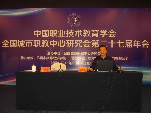 11月11日—12日,中国职业技术教育学会全国城市职教中心研究会第二十七届年会在杭州市举行,由杭州市旅游职业学校承办。本届年会有来自全国的35所中职学校近百名代表参会,收到论文75篇,我校陈元高校长参会并参加了校长论坛活动,其撰写的论文《探索适应新常态的中等职业教育发展》在年会评比中荣获三等奖。