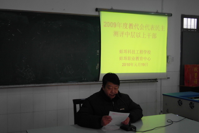 2010年1月19日上午,我校召开一年一度的中层干部述职会,15名中层干部接受了教代会代表评议。