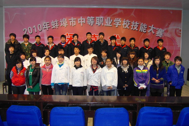 3月14日下午4:00,蚌埠市2010年中等职业学校技能大赛闭幕式暨颁奖大会在蚌埠职教中心隆重举行。蚌埠职教中心代表队在参赛的11个项目上成绩优异,获得了数控技术3个项目的一等奖,钳工一等奖,蛋糕裱花项目一等奖,新娘化妆项目一等奖,网页设计与制作二等奖、维修电工二等奖、普车项目二等奖,获三等奖以上的学生共有45名。