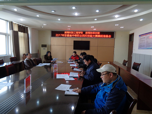 2017年安徽省中等职业院校技能大赛将于3月11日、12日举行。经过市赛的激烈角逐,我校代表蚌埠市参加2017年省级技能大赛共计22项,参赛选手共计51人,奔赴7个地市参加本次比赛,达到历史之最。为做好本次竞赛工作,2月23日下午,由教务处牵头,在十楼会议室召开2017年省级技能大赛赛前准备会,参会的有宋晓宾副校长、史毓勇处长、程东辉处长及各系部负责人,会议由史毓勇主持。