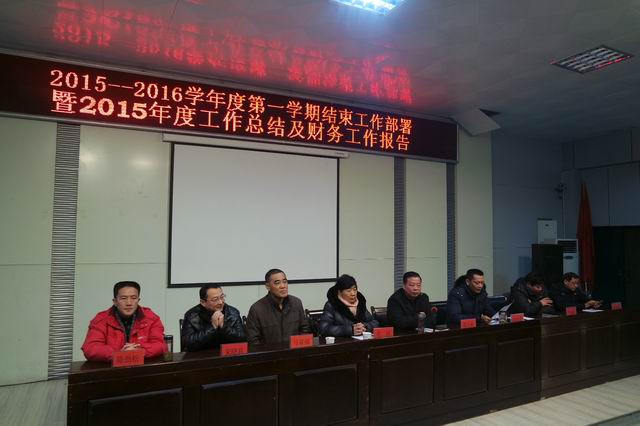 陈元高校长详细报告了2015年度财务工作,还对寒假期间工作、下学期开学工作作了部署。强调相关部门寒假期间认真完成示范校建设、学生管理、招生、校园安全保卫设、施设备检修维护、短期培训、省赛集训等九项工作。猴年新春佳节将至,他祝全校教职工新年愉快、阖家幸福!