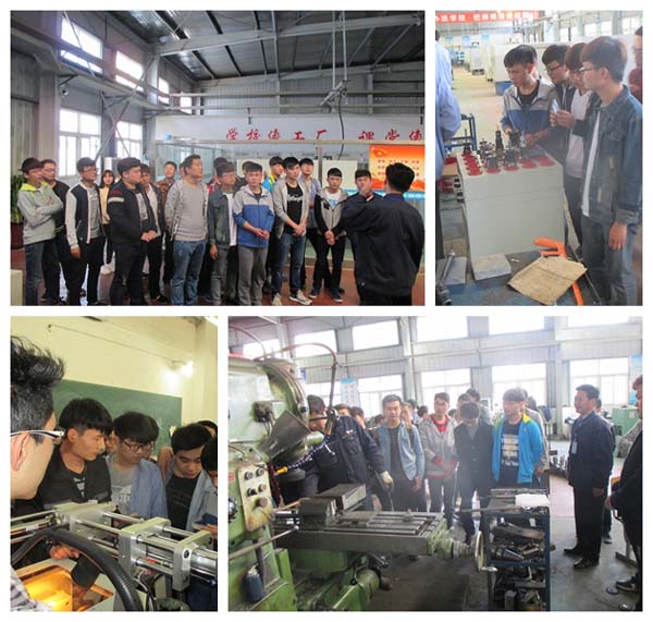 随后,蚌埠学院学生以班级为单位,分别参观了装配钳工实训室、数控加工实训车间、模具实训室等。在各实训场地都安排有专业教师对实训设备的功能、使用都进行了详细介绍并进行相关技能展示,使学生有了更细致的了解。同学们还积极请教老师,表现出极大兴趣。