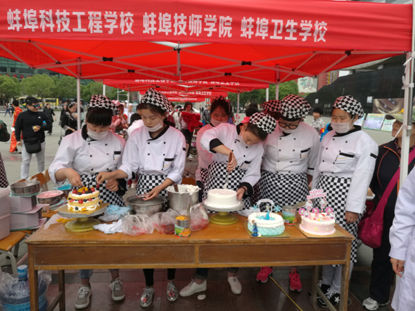职业学校便民服务活动在淮河文化广场举行,这是蚌埠市第二届职业教育活动周的一项重要内容。为向广大市民充分展示蚌埠职教中心(蚌埠技师学院)的教育教学质量、职教人的风采,我校数十名师生现场开展了“蛋糕裱花与制作”、“人物形象设计”、“汽车车身修复”、“机械制造类专业学生作品展”等技能展示活动;开展了“为市民测量血压、血糖,解答健康有关知识”、“老旧照片修复”、“修理家用电器、配制钥匙”、“职业教育政策解答”等便民服务活动。
