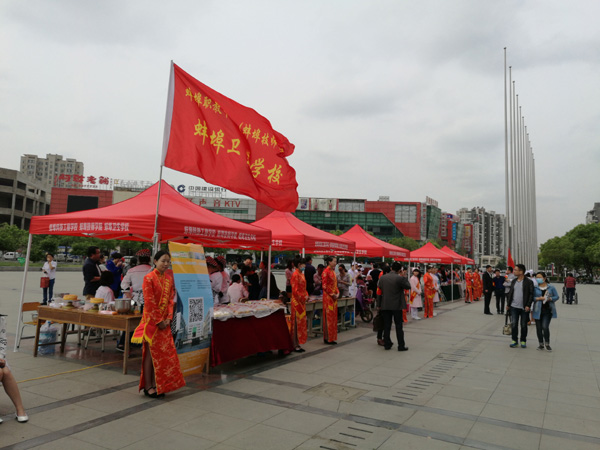 该校的宣传展台一布置好,就被广大市民围了起来,测量血压、血糖排起了长队;蛋糕制作展台被围得水泄不通,有的市民还与学生一道动手制作,活动临近结束,学生将制作好的蛋糕分发给现场的市民品尝,为整个活动增添了喜庆气氛;许多市民驻足学生作品展台前,为学生的精湛作品赞不绝口;学校教师还为市民献上了一曲“和谐中国”,歌声高亢激昂、荡气回肠,响彻在文化广场上;我校学生志愿者在整个活动中充分展示了职业学校学生的风采,他们向广大市民散发了职业教育政策解答、学校的宣传画册和招生简章,向广大市民介绍职业教育的有关知识,我校的教育教学情况和招生情况,让广大市民充分了解该校的发展情况。