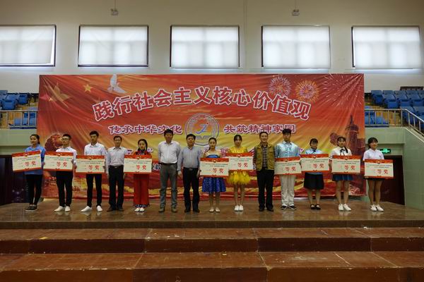 《朗诵中国,中国朗诵》、《我和我的祖国》……激昂有力的诵读抒发了学生们对祖国真挚情感,《红太阳照边疆》、《万泉河水》……饱含深情的合唱表达了同学们对祖国美好祝福。活动中亮点层出不穷,高潮迭起。比赛结束后,校纪委书记包太平宣布了获奖班级名单,郝登峰书记为获奖班级颁发了奖状,校领导与获奖班级代表合影。