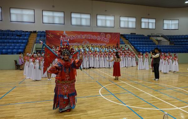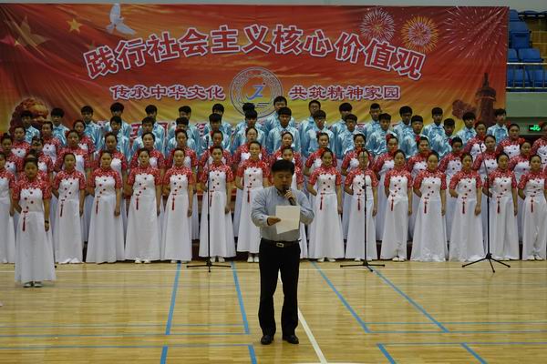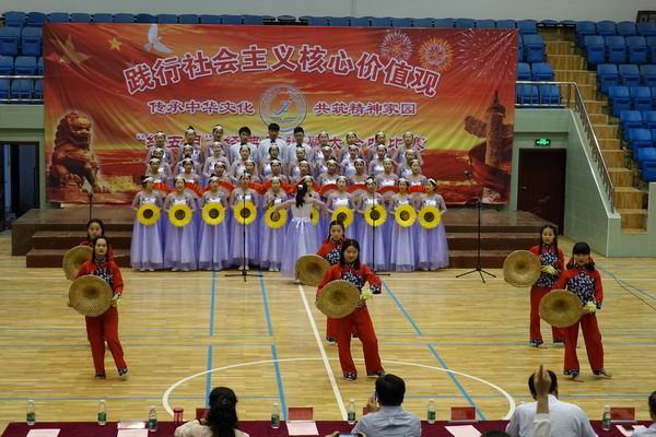 “红五月”活动是该校的一项传统活动,更是一项品牌活动,是学校德育教育重要的组成部分,本次活动的主题是“传承中华文化 共筑精神家园”。在前期的准备过程中,各班高度重视,班主任全程参与组织学生的排练,五月的校园里时常能听到嘹亮的歌声。