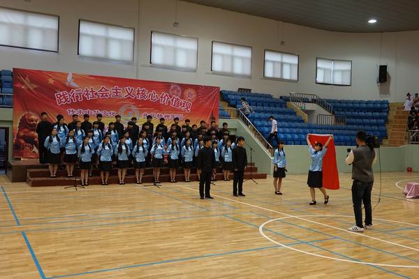 5月27日上午,蚌埠职教中心(蚌埠技师学院)践行社会主义核心价值观“红五月”经典诵读暨大合唱比赛在二七体育馆隆重上演。活动把经典诵读和合唱结合在一起,该校2015级共10个参赛队倾情表演了10个经典诵读和10个合唱节目,市教育局职成科科长西宗雷、局属学校责任督学魏曼玲应邀出席,学校领导、老师和2015级全体同学共同观看了演出。