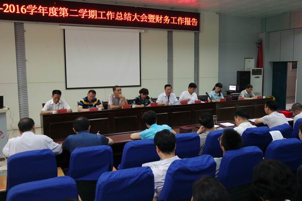 6月29日上午,蚌埠职教中心(蚌埠技师学院)召开2015-2016学年度第二学期工作总结大会,陈元高校长代表班子对本学期各项工作作了全面总结,并报告了本学期财务收支情况。会议由校党委书记郝登峰主持,全校教职工参加了大会,市教育局责任督学孔琪、魏曼玲应邀出席。